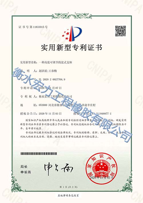 我公司主要經營范圍包括:生產、銷售、安裝、維護板式橡膠支座、盆式支座、球型支座、隔震支座、防水板、橋梁伸縮裝置、橡膠護舷、土工格柵、土工布、透水管、止水帶、波紋管、預埋件(預埋鋼板、配套上、下鋼板等附件、配件)。